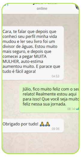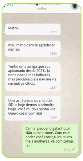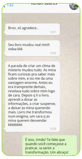 "Matrix da Sedução" é escrito em uma linguagem clara e acessível, com exemplos práticos e explicando o porque funciona. Mesmo que você seja um completo iniciante, você será capaz de entender e aplicar as técnicas do livro com facilidade. E, se tiver alguma dúvida, pode contar com o meu suporte pessoal.